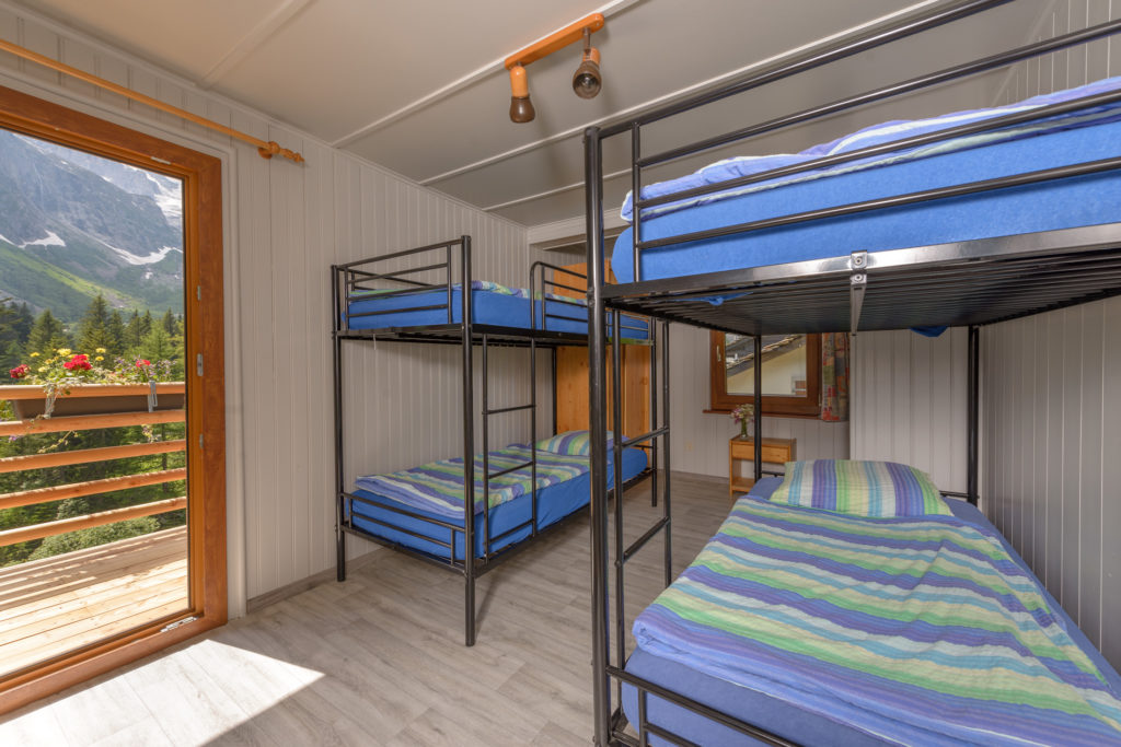 L’auberge des glaciers in La Fouly, dormitory room, shared bathrooms, showers with hot water, breakfast and dinner included;