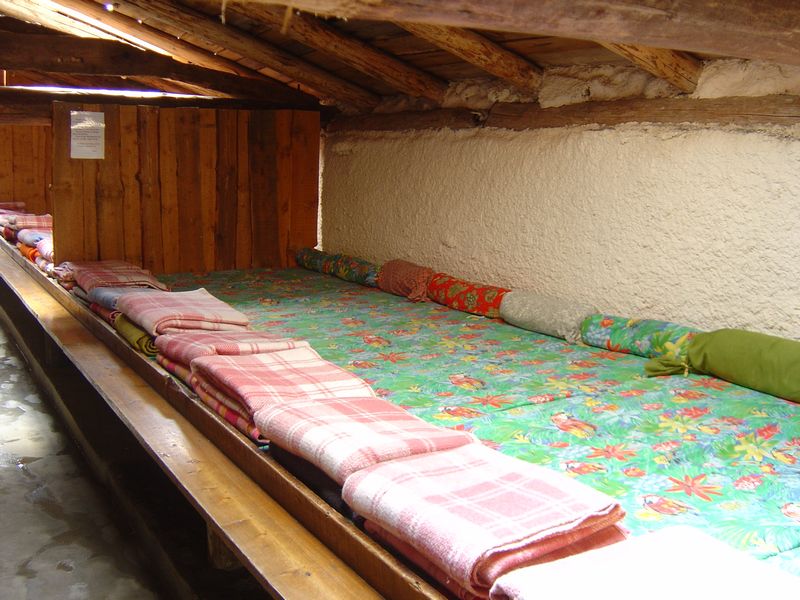 Refuge des Mottets, dormitory of basic standard so called “rustic” ;), access to bathrooms with showers with hot water, breakfast and dinner included;