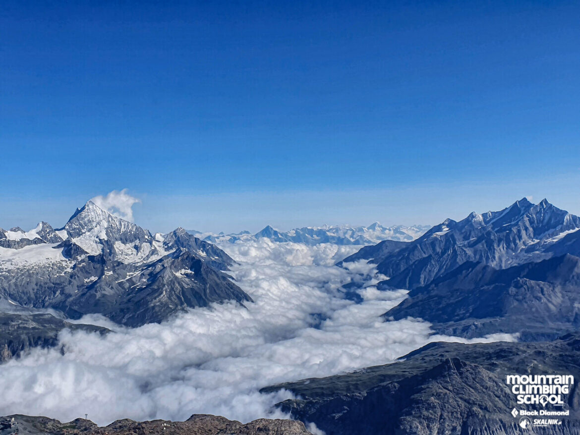 Theodulpass 3301 meters above sea level was used as early as Roman times as a mountain crossing. A long, divided approach awaits us. We will gain altitude laboriously, as we will face almost 1,300 meters of ascent. However, the higher we get, the more extensive the views – on one side of the Theodulpass the Matterhorn appears in all its glory, on the other side we will see the Klein Matterhorn and the Monte Rosa massif. When we reach Theodulhutte 3317 meters above sea level, we will have a well-deserved lunch, rest and move on. From the pass we descend over the lingering snow first to the Gandegghutte hut 3029 m above sea level, from where we have a spectacular view of such four-thousand-metre peaks as Breithorn, Pollux, Castor, Liskamm that is the Monte Rosa massif and the Matterhorn on the other side of the valley.